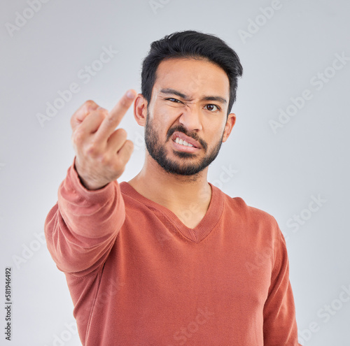 rude, middle, finger, portrait, man, studio, background, male, hand, asian, upset, problem, aggressive, conflict, hate, annoyed, furious, fail, middle finger, grey background, disrespect, hand gesture, people, face, isolated, alone, standing, looking, inside, person, guy, grey, indoor, showing, angry, ethnicity, hispanic, indoor, look, show, bad, frustrated, latino, anger, negative, disappointed, moody, loser