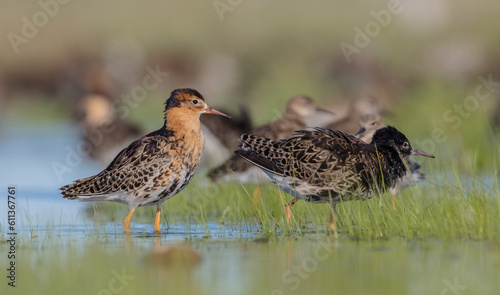 Ruff - birds at a wetland on the mating season in spring