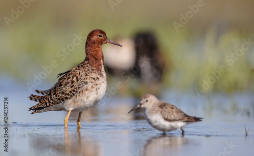 avian, beak, beautiful, beauty, bird, birdlife, bird, birding, colourful, environment, fauna, feather, feather, male, mating season, morning, natural, nature, ornithology, outdoors, plumage, ruff, shore bird, spring, wader, water, wild, wing, wing