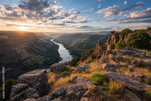 Rugged cliffs and rocky terrain create a stunning natural vista