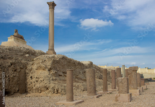 Ruins of columns in the Pillar of Pompeii in Alexandria, Egypt