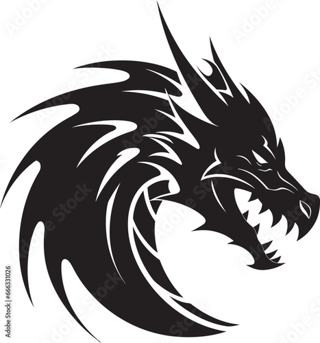 Ruler of Darkness Monochrome Vector Artistry of the Dragon Winged Menace Black Vector Roar of the Fearsome Dragon