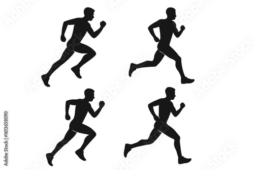 Runner silhouette set of dynamic running poses. Vector collection of athletes for marathon, jogging, and fitness designs. Athletic man in motion for sport concepts.