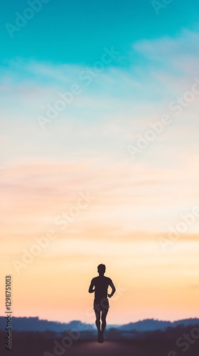 silhouette, runner, slow, motion, pastel, blue, sky, glowing, serene, peaceful, dynamic, radiant, youthful, athletic, stunning, energetic, vibrant, beautiful, focused
