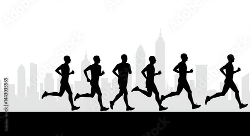 runner, silhouette, sport, marathon, fitness, exercise, city, urban, race, jogging, athlete, motion, white, background