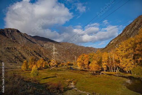 russia, siberia, altai, season, autumn, nature, birch, tree, river, water, stone, fast, early, morning, light, sun, coast, landscape, sky, blue, mountain, yellow, leaf, mountain, forest, cloud, vale, view, cloud, travel, panorama, hill, summer, grass, fall, park, meadow, road, green, outdoors, tour tourism