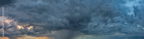 Russia. Western Siberia. Panorama of the evening sky over the fields near the city of Omsk.