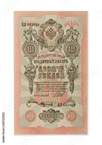 Russian empire old 1909 ten rubles from czar Nicholas 2. Signature Shipov.