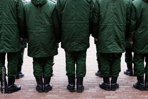 Russian soldiers. Russian army recruits. Russia Ministry of Defence emblem. Military chevron. Soldier uniform. Military service officers