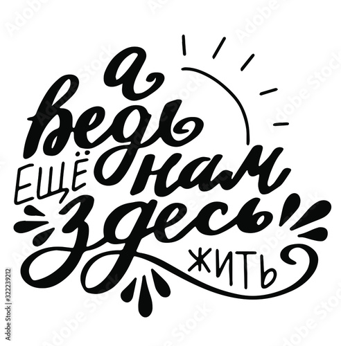 Russian translation: but we still have to live here. Save the planet. Zero waste concept. Cyrillic hand lettering. Russian language