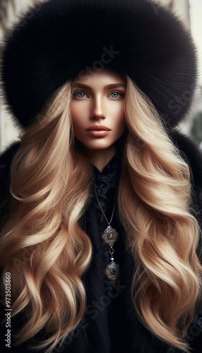 woman, beauty, hair, make-up, face, glamour, coiffure, closeup, sensuality, blond, russian, long hair, cap, pretty, model, elegance