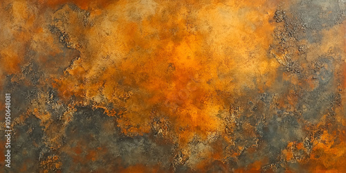 Rusted Metal Texture, Top View, Orange and Brown Tones with Aged Patina
