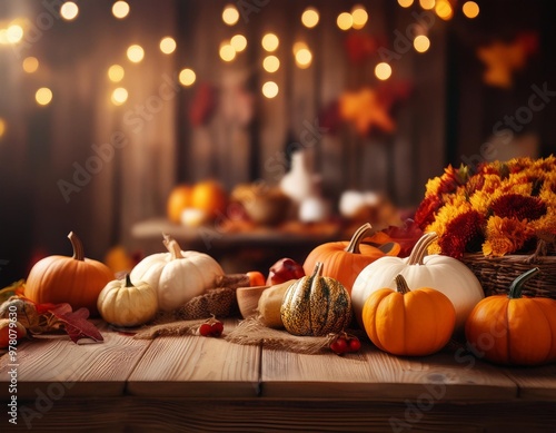 Rustic autumn harvest Thanksgiving background with depth of field for a warm and festive celebration