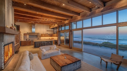 Rustic beach house with contemporary features.