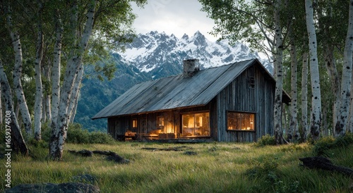 cabin, mountain, forest, wood, tree, fireplace, light, window, peaceful, tranquil, cosy, rustic, nature, wooden, home, relaxation, snow, landscape, sunset, sunrise, evening, morning, calm, quiet, adventure, travel, explore, hiking, camping, mountain, alpine, hut, filed, timber, exterior, illuminated