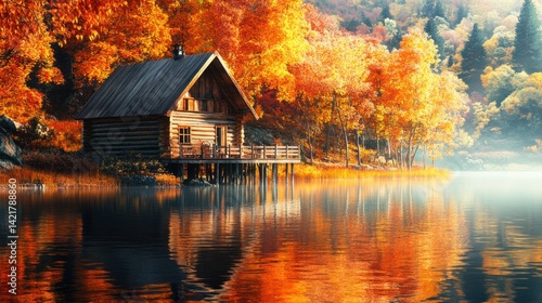 cabin, lake, autumn, fall, forest, tree, nature, peaceful, tranquil, scenic, landscape, wooden, house, october, november, vacation, retreat, get-away, serenity, picturesque, charming, rustic, cosy, calm, still, water, fog, mist, sunrise, sunset, timber, log, bungalow, beautiful, breathtaking, gorgeous, inspiring, serene, quiet, colourful, honed, stunning, majestic