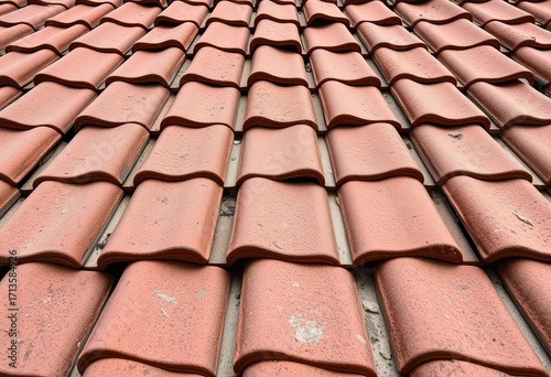 Rustic clay roof tiles, textured surface, weathered appearance, pattern, Mediterranean