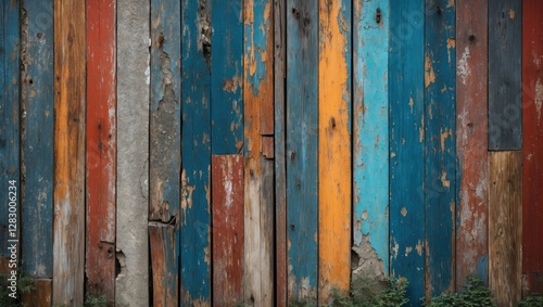 Rustic Colorful Wooden Plank Wall with Distressed Texture and Varied Stripes for Background or Textures in Design Projects