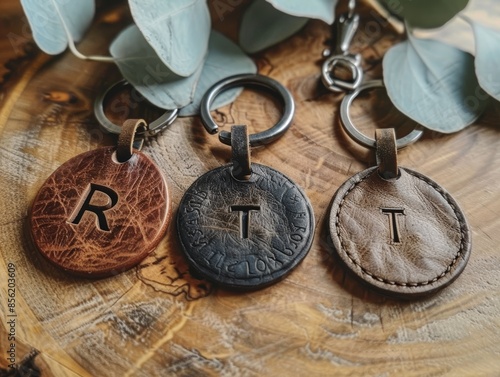 leather, keychain, embossed, wooden, table, desk, accessory, home, office, decor, rustic, vintage, classic, traditional, organiser, storage, holder, item, object, still, life