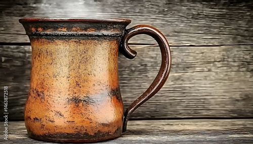mug, earthenware, rustic, pottery, vintage, wooden, surface, brown, warm, weathered, handle, handcraft, ceramic, antique, kitchen utensile, decor, display, still life, aged, design, texture, detail, closeup, hot drink, tea, drink, cup, hand-made, artisan, craft, warmth, comfort, table, home, interior, decoration, art, still, life, object, sharpened, lighting