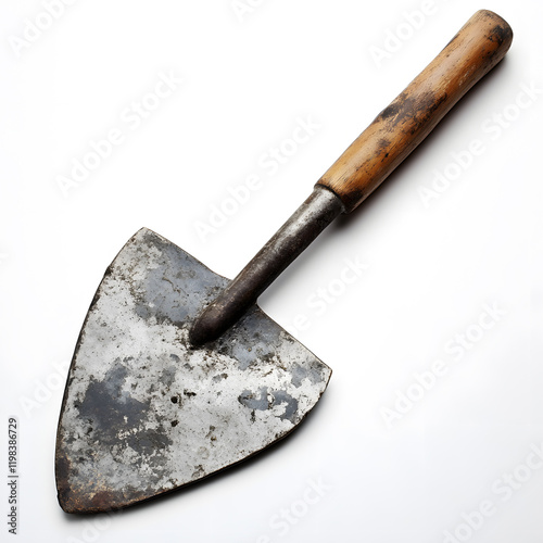 rustic, white background, worn, sturdy, flat, construction, garden, tool