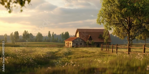 Rustic House with Red Roof in Peaceful Field