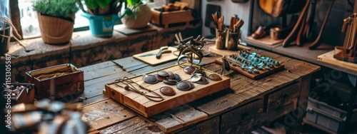 jewellery, workshop, rustic, tool, material, warm, lighting, cosy, craft, artistry, hand-made, decor, natural, traditional, vintage, elegant, design, creative, classic, workspace