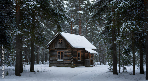 cabin, winter, snow, forest, log, house, nature, rural, rustic, landscape, wood, building, tree, cold, peaceful, cosy, quiet, timberland, bungalow, season, countryside, exterior, frost, glacé, wood, scenic, wilderness, calmness, architecture, isolated, shelter, scandinavian, fairy tale, retreat, christmas, get-away, outdoors, snowy, idylli, dwelling, finnish, north