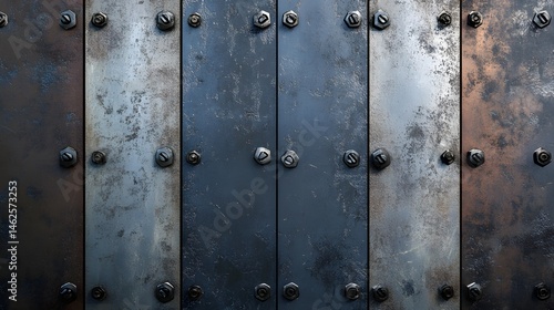 metal, panel, texture, wall, industrial, grey, brown, steel, dark, rustic, bolt, screw, hardware, surface, design, background, pattern, colours, tone, vertical, strip, geometric, construction, modern, contemporary, abstract, detail, rough, aged, weathered, seamless, image, background, material, decoration, stripes, structure, closeup, art