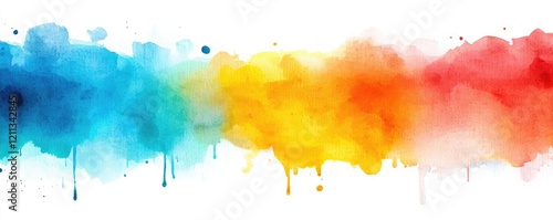 Rustic watercolor concept. A vibrant watercolor splash with blue, yellow, and red hues intermingling artistically.
