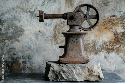 rusted, metal, machine, industrial, vintage, antique, old, weathered, texture, grey, brown, stone, background, worn, gear, wheel, mechanism, artifact, object, still, life, photo, dark, grunge, decay, patina, iron, steel, history, technology, revolution, equipment, tool, machinery, component, contraption, construction, engineering, rust-eaten, footed, textured, closeup
