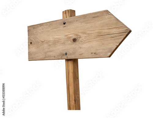 Rustic wooden arrow signpost with aged texture, isolated on a transparent background, PNG cutout, pointing left, ideal for travel or outdoor themes