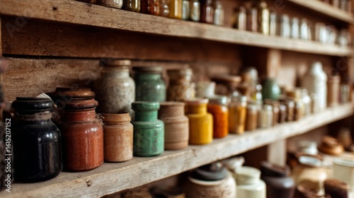 jar, glasses, spice, herb, kitchen, rustic, vintage, shelf, storage, wood, traditional, interior, antique, collection, home, setup, ingredient, display, cosy, decoration, natural, organised, scene, history, container