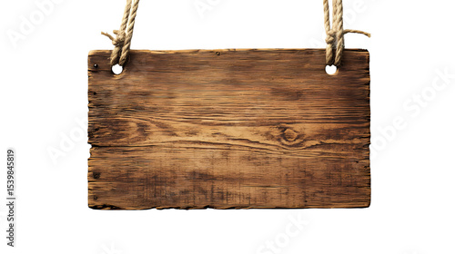 Rustic Wooden Sign Hanging on Rope Blank Template for Your Message isolated on transparent background