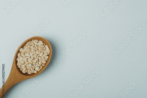 rustic, wooden, spoon, filled, raw, oat, placed, plain, white, surface, minimalistic, design, natural, ingredient, leaving, abundant, copy space, flexible, creative, professional, branding, layout, background, inspiration, sharpened, empty space, detail, modern, abstract, minimal, texture, style, visual, colours, composition, concept, unique, scene, art