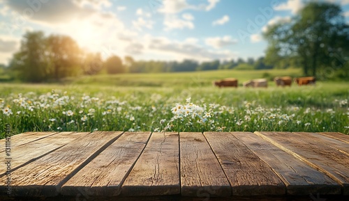 nature, background, animal, organic, flower, placement, blooming, product, flora, natural, scenic, countryside, bloom, sunny, peace, sun, meadow, farm animal, advertisement, sunlight, day, serenity, idylli, beauty, postcard, green, table, farm, cattle, calmness, calm, grass, summer, pasture, botany, farming, rural, wooden, field, bright, landscape, rustic, daisy, agriculture, spring, vibrant, country, wholesome