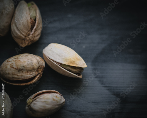 Rustikale Pistazien auf dunklem Holz – Moody Food Fotografie