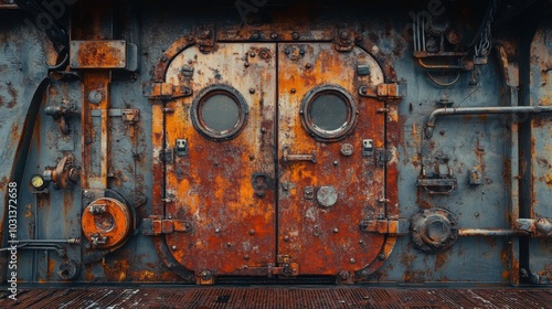 door, door, rust-eaten, metal, industrial, grunge, old, weathered, worn, aged, steel, iron, texture, surface, detail, detail, rivet, bolt, hinge, circular, round, window, window, machinery, equipment, pipe, tube, valva, blue, orange, brown, grey, background, design, pattern, abstract, vintage, antique, scrap, junk, factory, warehouse, abandoned, forgotten, decay, corrosion, rust
