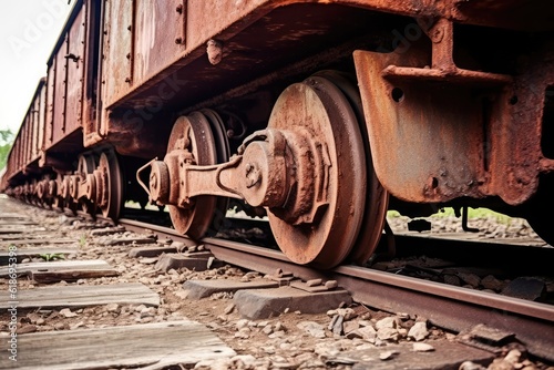 Rusty Freight Car Wheels on Abandoned Railroad Tracks