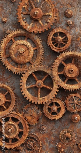 gear, rust-eaten, metal, industrial, machinery, cog, intricate, textured, mechanical, system, technology, vintage, clockwork, old, brown, orange, rusted, detail, pattern, circle, structure, metalwork, design, component, precision, mechanism, movement, interlocking, connection, complex, engineering, science, power, motion, work, machine, part, metallic, patterned, closeup