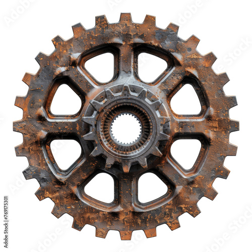 Rusty industrial gear with aged metallic texture, cut out - stock png.