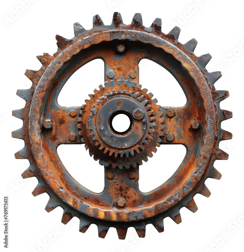 Rusty industrial gear with aged metallic texture, cut out - stock png.