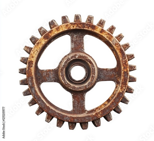 gear, cog, wheel, rust-eaten, metal, iron, old, antique, vintage, mechanism, machine, part, component, industrial, technology, engineering, equipment, machinery, manufacturing, background, texture, pattern, design, element, detail, object, isolated, white, brown, orange, grunge, weathered, worn, aged, retro, classic, history, time, work, power, strength, worked, system, drive, transmission, rotation, circular, teeth, teeth