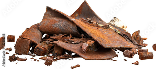 rust-eaten, metal, scrap, pile, industrial, waste, recycling, corrosion, texture, iron, steel, debris, fragment, piece, oxidation, decay, grunge, aged, weathered, old, antique, background, material, surface, detail, component, machinery, junk, salvage, demolition