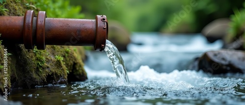 Rusty Pipe Flowing Water Spring River Drainage System