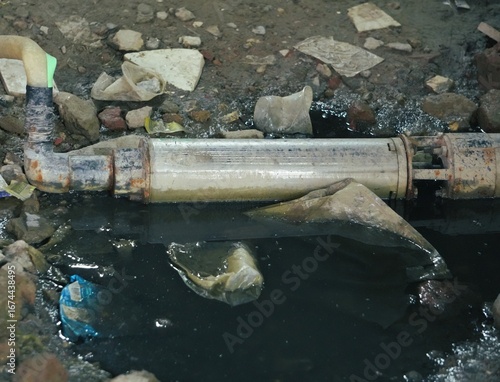 Rusty Pipe with Dirty Wastewater Flowing Out