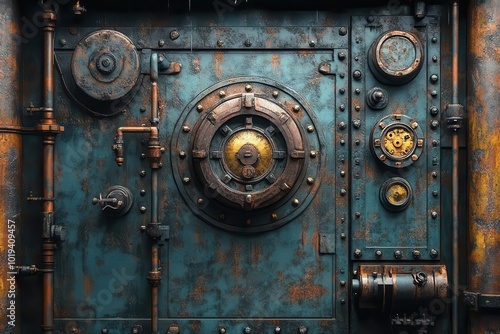 rusty steampunk wall adorned with intricate machinery textures showcasing the blend of vintage aesthetics and industrial design in a captivating visual experience