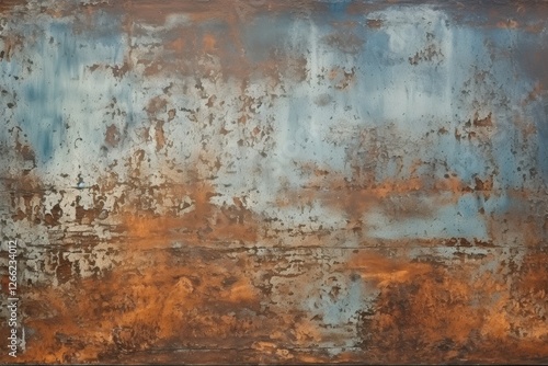 Rusty Steel Surface with Grunge Texture and Stains in Earthy Tones of Orange and Blue, Capturing the Essence of Decay and Industrial Aesthetics