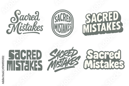 Sacred Lettering Styles. Sacred Mistakes. Set lettering. harmonious lettering variations of the same emblematic concept (Whimsical curly type with flourishes,
