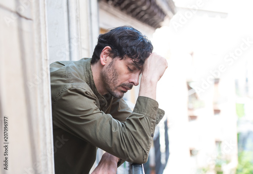 depression, depressed, anxiety, lonely, man, mental, health, disease, expression, emotion, sad, problem, home, stressed, adult, balcony, worried, alone, unhappy, thoughtful, lifestyle, pensive, male, thinking, face, disappointed, despair, 40s, breakdown, crisis, closeup, stress, sorrowful, sleepy, person, feeling, lost, mature, sick, grief, casual attire, american, pain, pressure, life, outside, city